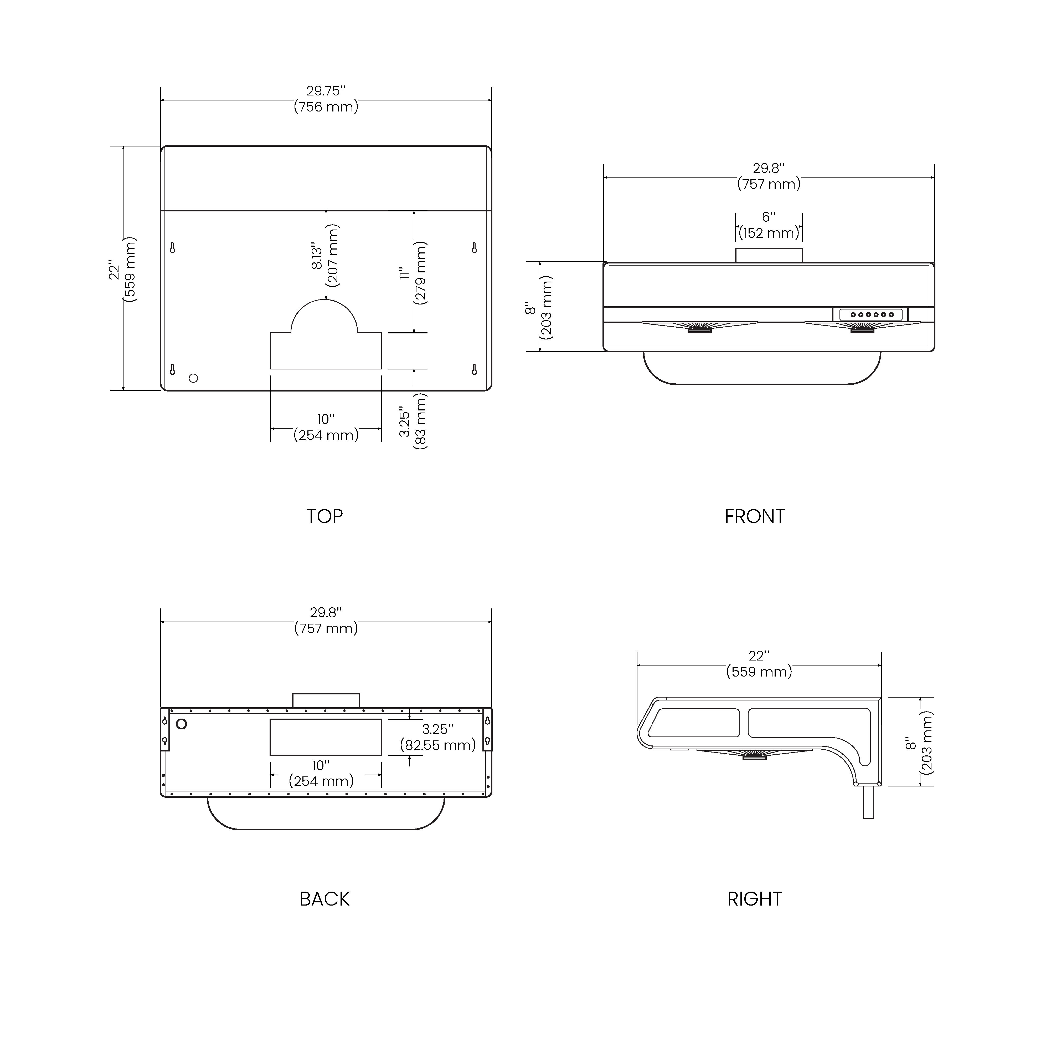 Hood Dimensions (W×D×H) | 29.75" × 22" × 8" |