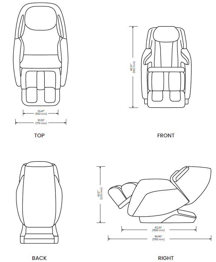 | Lying Dimensions (W×D×H) | 30.3” × 68.9” × 42.1” |