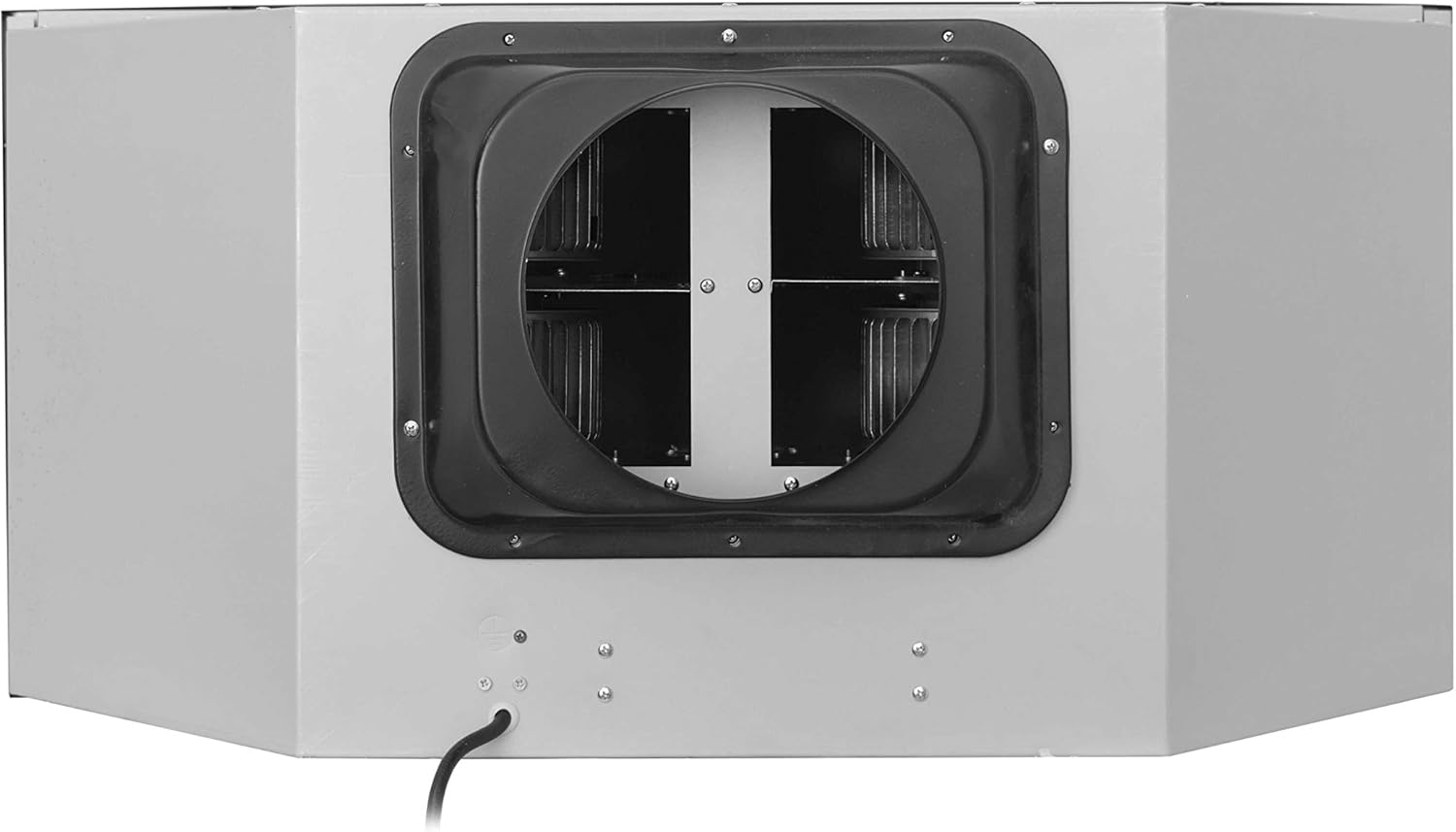 - 8-Inch Round Vent: The top vent connector is an 8" diameter round shape, providing a larger tunnel for the range hood's colossal 1000cfm performance.