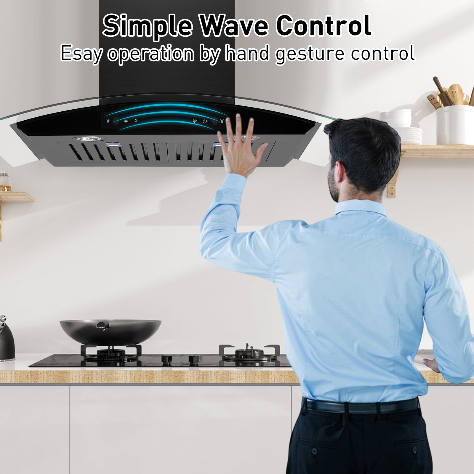 Vesta's Amsterdam 36" metallic black stainless steel wall-mounted range hood is a durable companion for your kitchen. Featuring an ultra strong motor, a touchscreen panel, two baffle filters, a glass canopy, and two LED lights, this unit will elevate your cooking experience to new heights. Here’s what makes it exceptional: