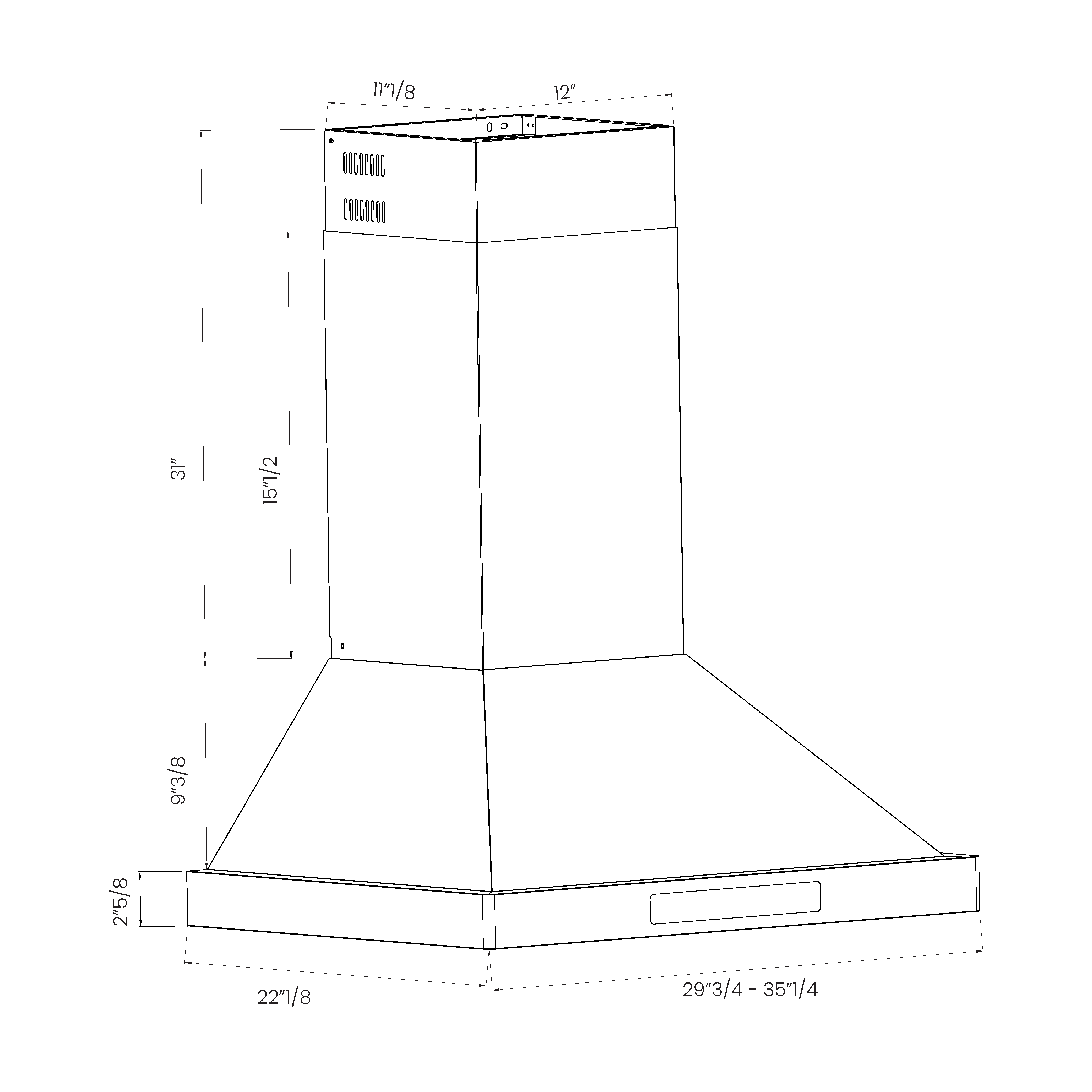 | Hood Dimensions (W×D×H) | 35.25" × 22.13" × (26.9" - 42.4") |