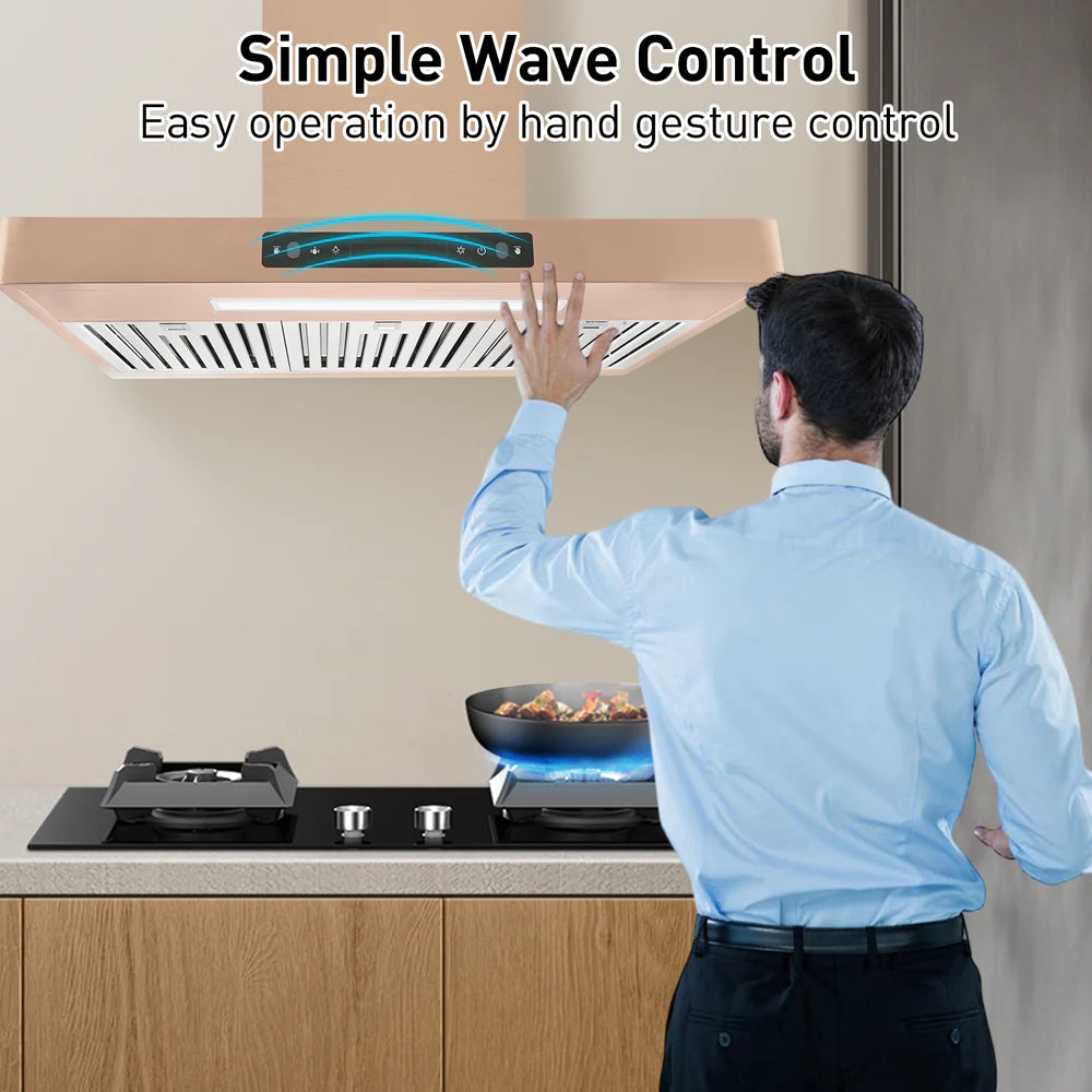 Vesta's Copenhagen 30-inch rose gold stainless steel wall-mounted range hood is a durable companion for your kitchen. Featuring an ultra strong motor, a touchscreen panel, two baffle filters, and an LED light, this unit will elevate your cooking experience to new heights.