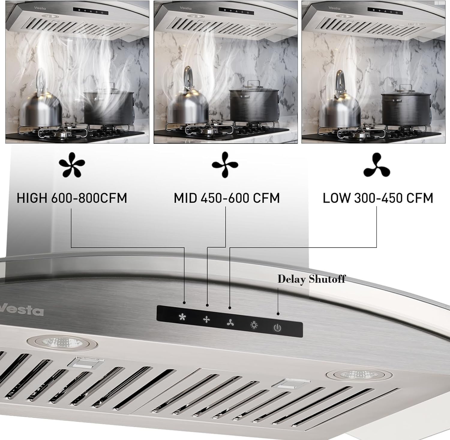 - Powerful Ventilation: This range hood exhausts air at an impressive 800 CFM to keep your kitchen fresh and odor-free.