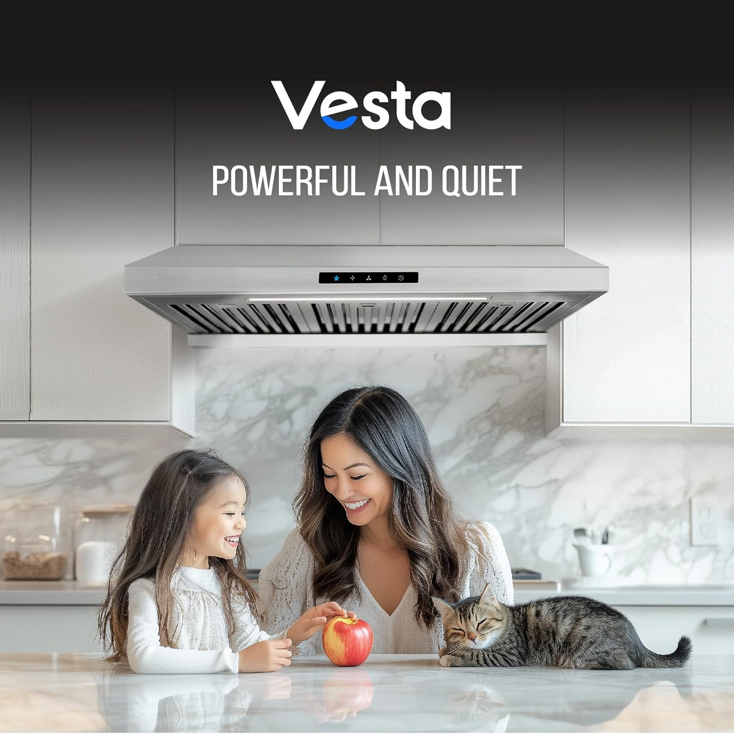 ✅ SUCTION POWER: Vesta's Arlington 850CFM 30" stainless steel under-cabinet range hood features powerful performance and incorporates a creative curved baffle filter design that can easily remove grease, vapors, and odors.
