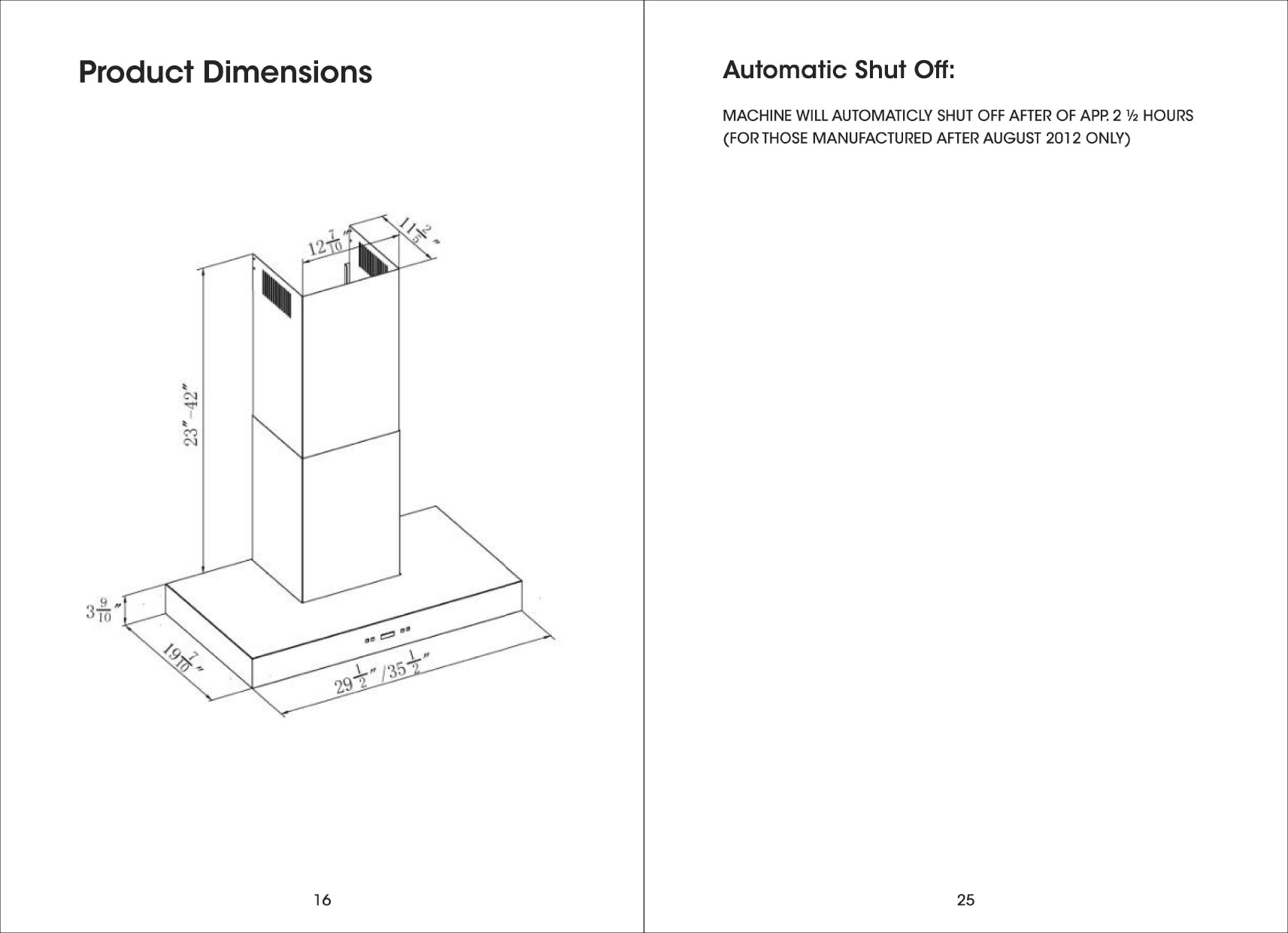 Dimensions de la hotte (L × P × H) | 35,5 po × 22 po × (23,75 po - 43,5 po) |