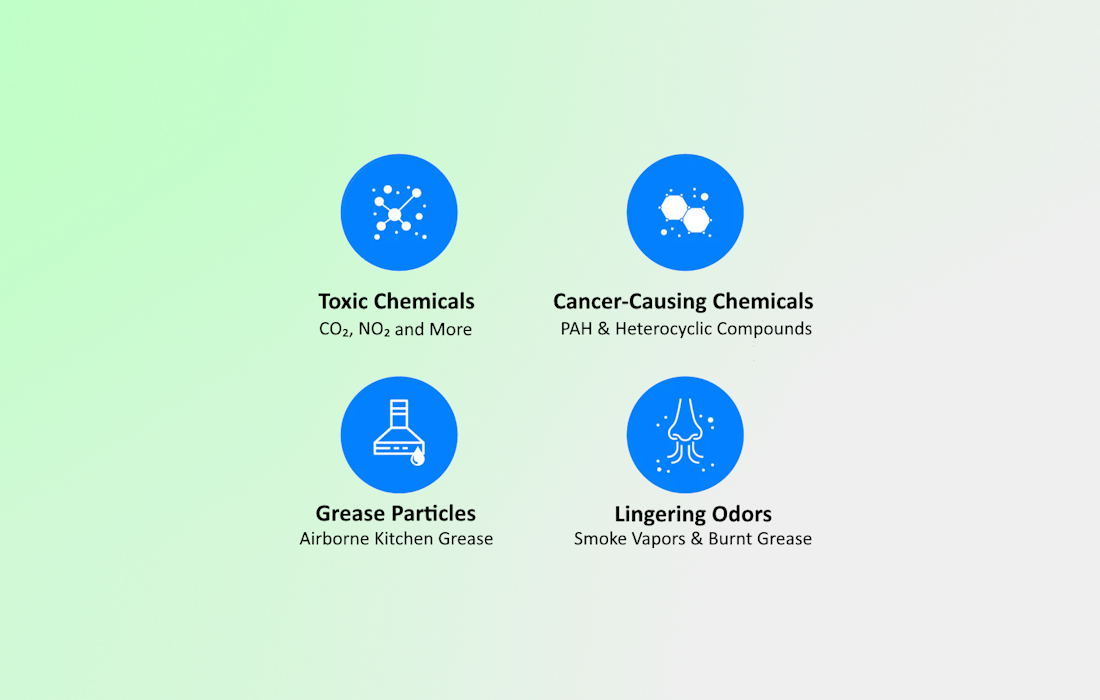 Grease Particles from cooking can adhere to walls and surrounding areas, making them difficult to clean and potentially damaging furniture.