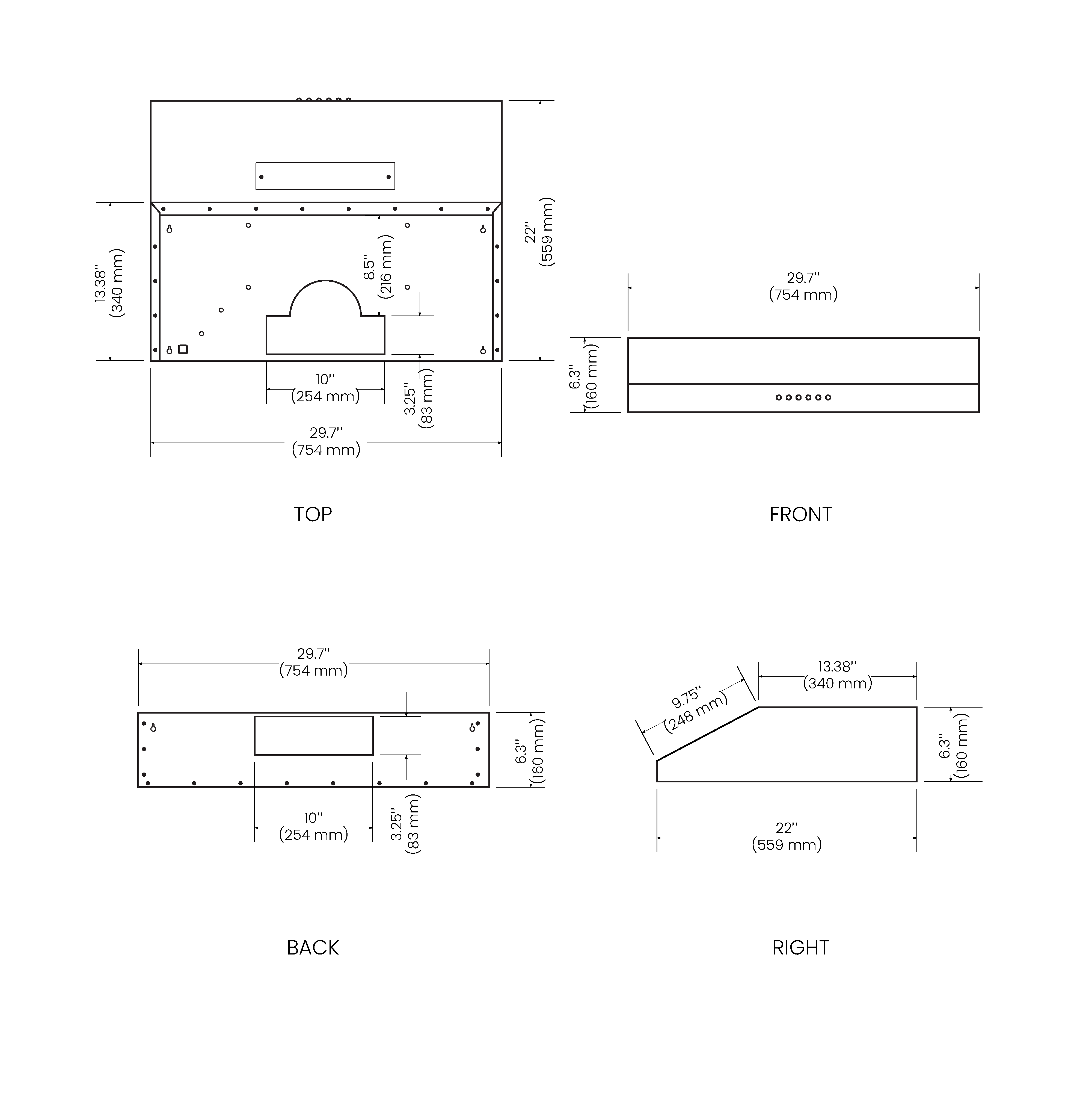 Hood Dimensions (W×D×H) | 29.7" × 22" × 6.3" |