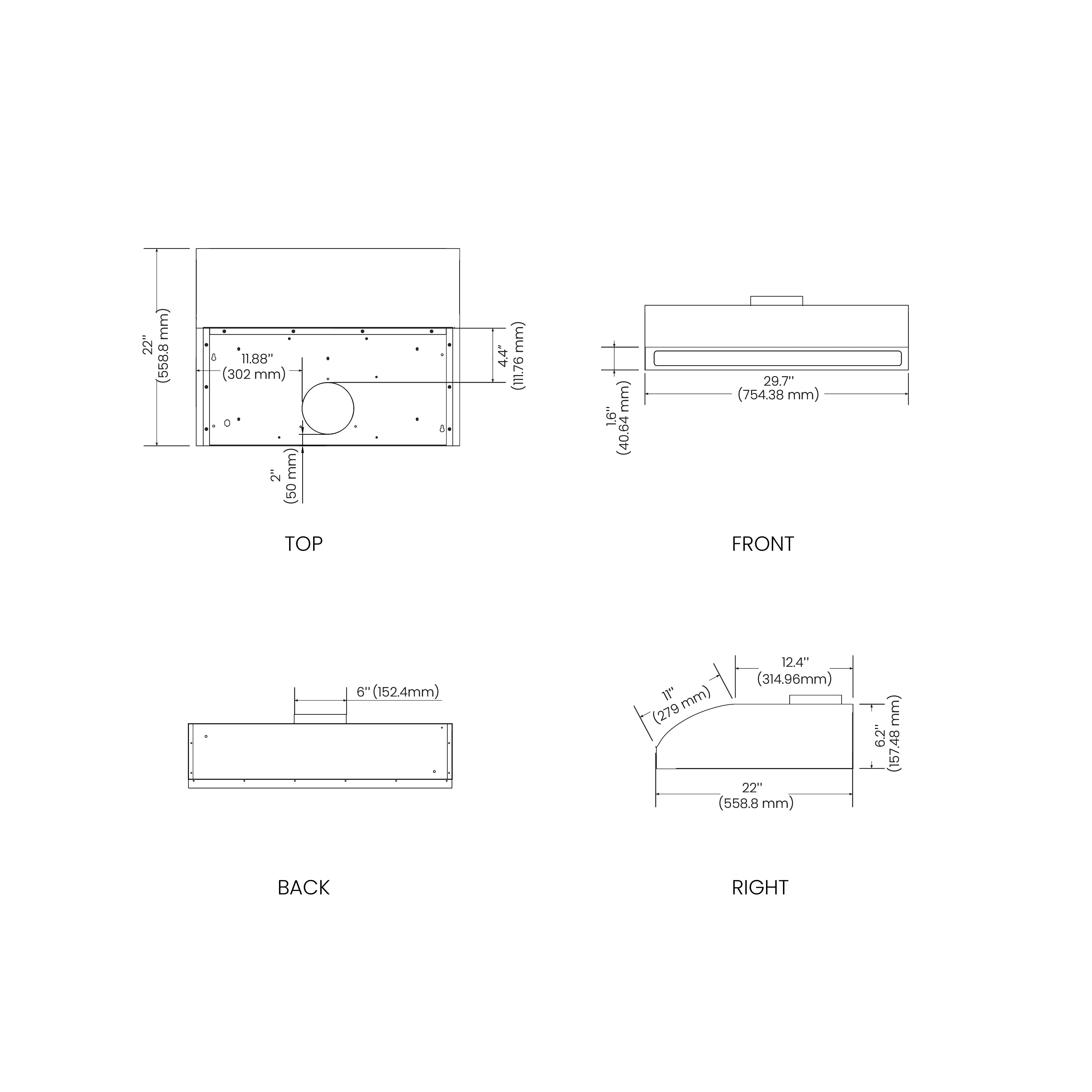 Hood Dimensions (W×D×H) | 29.7" × 22" × 6.2" |
